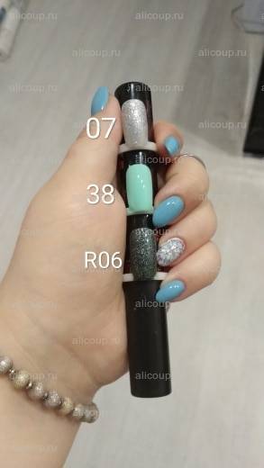 Пришли ровно за месяц, упакованы как обычно в пакетики и пенопластовый блок. заказываю уже не первый раз эти лаки у этого продавца и каждый раз не могу нарадоваться! 07 - красивое серебро с достаточно ярким блеском. чтобы сделать как на картинке надо будет три слоя. на весну в два слоя отлично пойдёт - не так ярко, но типсу перекрыл отлично. 38 - то, что я давно искала! отличный бледно-мятный оттенок, типсу перекрыл в два слоя, хоть первый немного плешивил. R06 - как обычно в восторге с этой серии. густоват, но блестит просто нереально! подложка цвета тёмного хакки, много голографических блёсток, при желании можно уложить и в один слой, но чтоб выровнялся лучше два средних. эти три ещё не пробовала в деле, но по опыту знаю, что носкость у них отличная - 2-3 недели без сколов и отслоек легко. баночки, конечно, небольшие, но у меня ещё не закончился первый заказанный полгода назад 45 цвет, которым было сделано 5 маникюров на ногти примерно моей длины. любимые гель-лаки)))