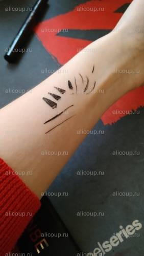 Итак, я очень долго тянула с отзывом об этой подводке, так как старалась максимально старательно ее протестировать (ну и лень было).Фетровый наконечник по форме и размеру похож на Эйвон Экстенд, но в разы мягче -- за это огромный плюс, работать им удобно и легко. Из минусов -- мягкий фетр быстро сохнет и собирает на себя любую базу, на которую вы наносите подводку, так что служить будет не так долго, как тот же Экстенд. Ну и деформируется в процессе знатно.По поводу штампа -- это не универсальное оружие. Во-первых, острие стрелки все равно притуплено, а значит, придется дорисовывать стрелку самостоятельно, а во вторых, используя штамп, сложнее определить, под каким углом ваши стрелки будут торчать (вполне возможно, что каждая под разным). На фотках толстые стрелки сделаны штампом, тонкие -- только подводкой. Свотчи расположены в порядке усиления нажатия.