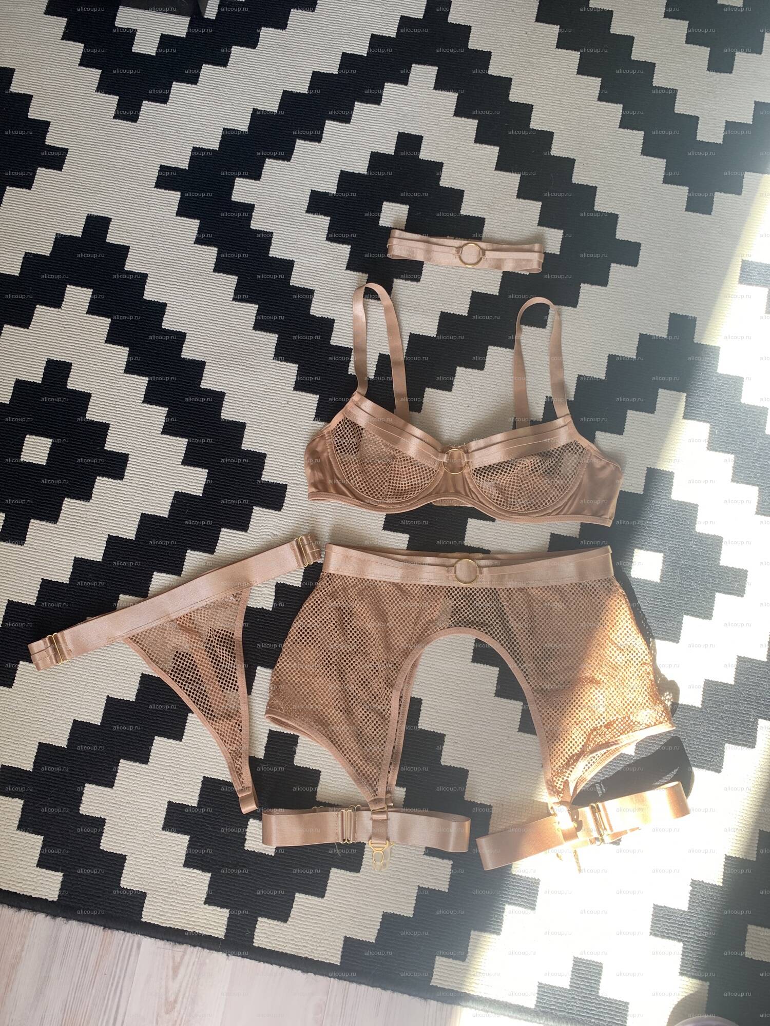 Брала свой размер S прочитав отзывы. Сейчас бы, наверное, взяла размер М.Качество неплохое, швы ровные, но есть небольшие косяки на чокере и пара торчащих ниточек. За свою цену отлично белье очень красивоеТрусики подошли идеально, красиво смотрятся со всех сторон. Удобно что у пояса для чулок есть несколько режимов затяжки как на бра и ремни на лямках регулируются по ширине. Пояс также сел отлично!В обхвате лифчик большеват, хотелось бы еще на одну застежку меньше размер. Чашка наоборот маленькая, грудь прижимает и резинка сдавливает ее. Думаю что заказав размер М ситуация была бы проще, в обхвате хотя бы можно было бы ушить обхват, если бы подошла чашка, но возможно трусики и пояс были бы большие. В целом могу смириться, не на улицу же в нем идти :)Чокер большой очень, висит на шее, нужно дорабатывать!Мои параметры: в груди - 82, под грудью - 73 (ношу 70D-75DD) талия - 60, бедра - 92, рост - 168