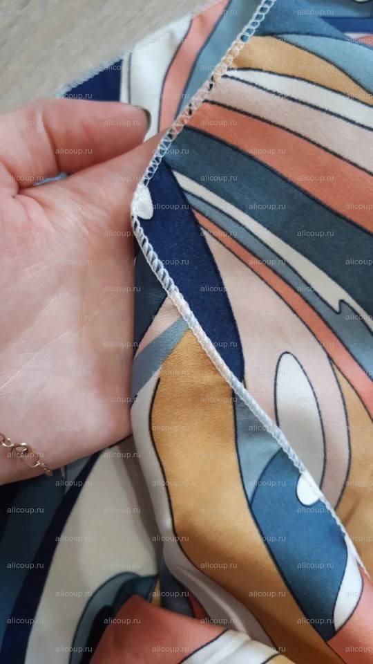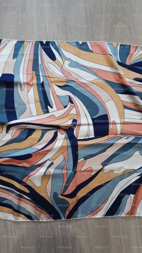Очень красивый, качественный платок размером 47х49 см. Цвета яркие, насыщенные, рисунок чёткий, полностью соответствует описанию. Край обработан аккуратно, торчащих ниток нет. Изготовлен платок из качественного мягкого полиэстера, полотно плотное, не просвечивает, лицевая сторона яркая и шелковистая, изнаночная бледнее и матовая. Посылка была сборная (от разных продавцов), шла 15 дней, отслеживалась, все дошло без дефектов и повреждений. Заказом очень довольна, буду заказывать ещё. Спасибо продавцу за качество товара.