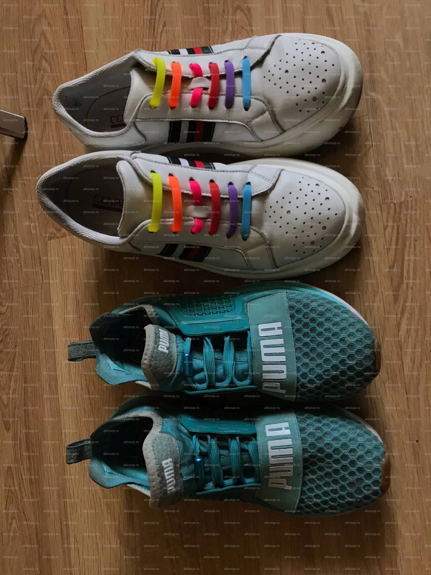 В одном наборе не было голубого шнурка, хотя пакеты были заклеены, хорошо два заказывали, вставляются легко зубочисткой или спичкой нажимая на толстую головку шнурка посередине -где расходится в две стороны. , и вынимаются также моментально. Не знаю что там у кого рвется, день хожу полет нормальный. Очень удобно! Рекомендую.