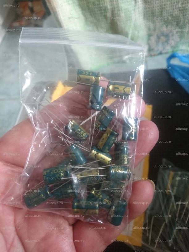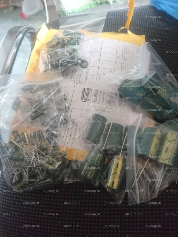 Два с лишним месяца доставка до М.О. - средний результат. Заказ пришёл в общем пакете посылок. Количество соответствует заявленному. На этом плюсы заканчиваются. Вес конденсатора меньше, чем у такого же, но известной фирмы. Отсюда - ёмкости (все!) меньше на 5-15%, в среднем. ESR - от 0.2 Ома (у больших ёмкостей), до 2-3 Ома (и больше), у малых ёмкостей. В целом, результат на 4 звезды, не больше.