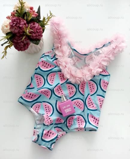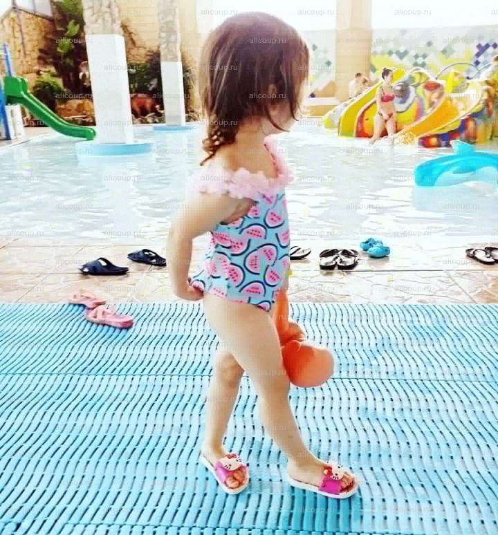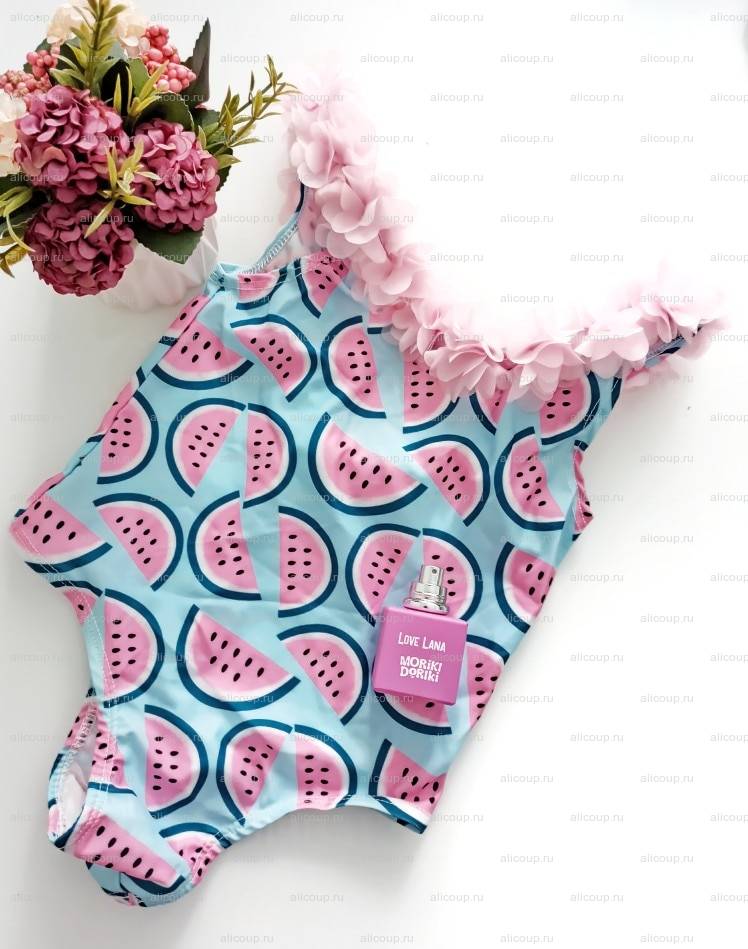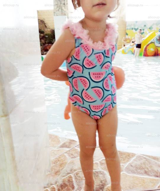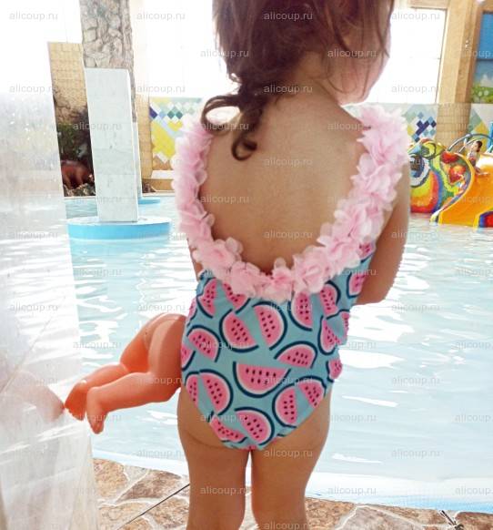 Я люблю и всегда покупаю детские купальники именно на АлиЭкспресс. Цены в городе несоразмерно завышены, а шьют все равно в Китае. Таким образом, моя малявка самая модная в бассейне/и т.д, а купальники мы можем менять "как перчатки".Купальник на самом деле самый простой, имеет обычный крой, и наверное, я бы смогла сшить такой сама. Но здесь изюминка именно в принте. Яркий арбузик придется по вкусу всем и каждому. Очень красиво оформлена спинка и это конечно же изюминка. Но есть и минус, причем, для меня он значительный. Трусики сзади весьма узковаты и западают, образуя стринги. Согласитесь, стринги на 3х летнем ребенке не лучший вариант.Ткань стандартная купальная, пошита очень аккуратно, нитки не торчат, при распаковке неприятный запах отсутствует. Сам же декор/цветочки довольно мягкие, ткань схожа с Фатином. Носить такой купальник было не очень комфортно, поскольку малыш постоянно поправлял трусики и лямки спадали. Но это лишь потому, что размер я выбрала на вырос. 4Т при росте 98
