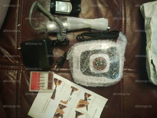 Привет девочкам и мальчикам)заказала я аппарат для маникюра!(НАКОНЕЦ ТО)Была мысль купить что-то проще и бюджетнее, но потом здравый смысл взял верх, я заказала аппарат с максимальной скоростью 35000 оборотов в минуту.На момент покупки стоимость составляла 1996руб., В магазинах своего города такой аппарат я встречала по цене от 4000 руб.Заказ буквально через 5 дней мне привез курьер. Неожиданно приятно, что не пришлось тащиться на почту.Коробки не было,хотя просьбу мою упаковать по лучше продавец не выполнил,но все доехало в целости)В наборе лежало что то типа инструкции конечно же не на русском,но мне слава богу все знакомо!Содержимое коробки во всей красе: сам аппарат, ручка-фрезер, подставка для ручки, педаль, набор фрез.Сам аппарат для маникюра сделан из качественного пластика, к качеству сборки не придраться. С помощью кнопки можно задавать направление вращения фрезы - есть реверс. Регулятор скорости мягкий и плавный, видно сколько оборотов крутит. Есть кнопка переключения